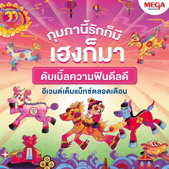 ช้อปสุดใจกับตรุษจีนปีม้า เมกาโชคดีม้าแล้ว รับโชดดีกล่องสุ่มปีม้าพวงกุญแจ Fortune horses limited edition มูลค่า 888 บาท หรือแลกรับฟรีของกำนัลอั่งเปา ม้านำ้ หรือม้านั่ง เพียงช้อปตามเงื่อนไขที่กำหนด นอกจากนี้เรายังแจก wallpaper ที่ออกแบบโดย TU!! Illustratu ศิลปินและนักวาดภาพประกอบชาวไทยที่มีผลงานโดดเด่นสุดๆ และมาร่วมงานฉลองตรุษจีนที่อลังการพร้อมดูโหวงเฮ้งกับซินแสชื่อก้อง เสริมดวงชะตาต้อนรับปีม้ากัน Megabangna #YourEverydayMeetingPlace