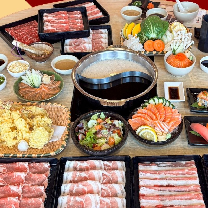 เมนูเด็ด: หมูคุโรบุตะ, เนื้อวัวสไลซ์, น้ำซุป 6 แบบ, ซูชิ+ของหวานไม่อั้น