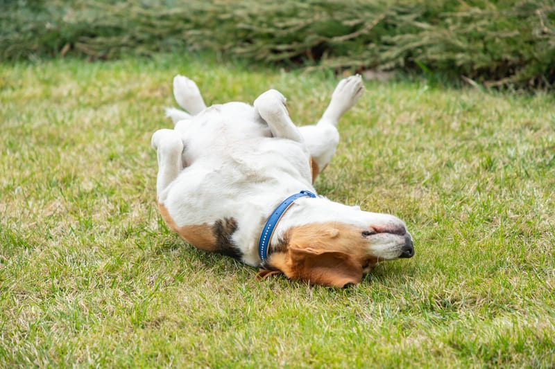 การนอนหงาย ภาษาหมาลักษณะนี้อาจหมายถึงความเชื่อใจและอยากให้เกาท้อง แต่ก็อาจเป็นท่ายอมจำนนหรือขอให้หยุดก็ได้ สังเกตว่าตัวผ่อนคลายหรือเกร็ง ถ้าตัวแข็ง อาจไม่ได้สนุกอย่างที่เราคิด