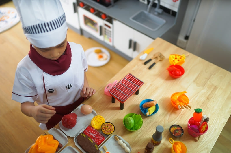 การเล่นสวมบทบาทสมมติต่าง ๆ ไม่ว่าจะเป็นการสวมบทบาทเป็นคุณหมอ เป็นพ่อครัวแม่ครัวในครัวจำลอง หรือเป็นแคชเชียร์ขายของ และอาชีพอื่น ๆ อีกมากมาย ซึ่งการเล่นสมมติช่วยให้ลูกได้จำลองสถานการณ์ในชีวิตจริง ฝึกการแก้ปัญหา และพัฒนาทักษะการสื่อสารผ่านตัวละครที่เขาสร้างขึ้น