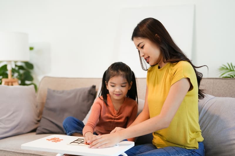 A: ของเล่นที่ต้องใช้ความนิ่งและการจดจ่อ เช่น การร้อยลูกปัดขนาดใหญ่ จิ๊กซอว์ที่มีจำนวนชิ้นพอเหมาะ หรือเกมจัดหมวดหมู่สิ่งของ จะช่วยให้เด็ก ๆ มีความนิ่งขึ้น สามารถจดจ่ออะไรได้นานมากยิ่งขึ้น