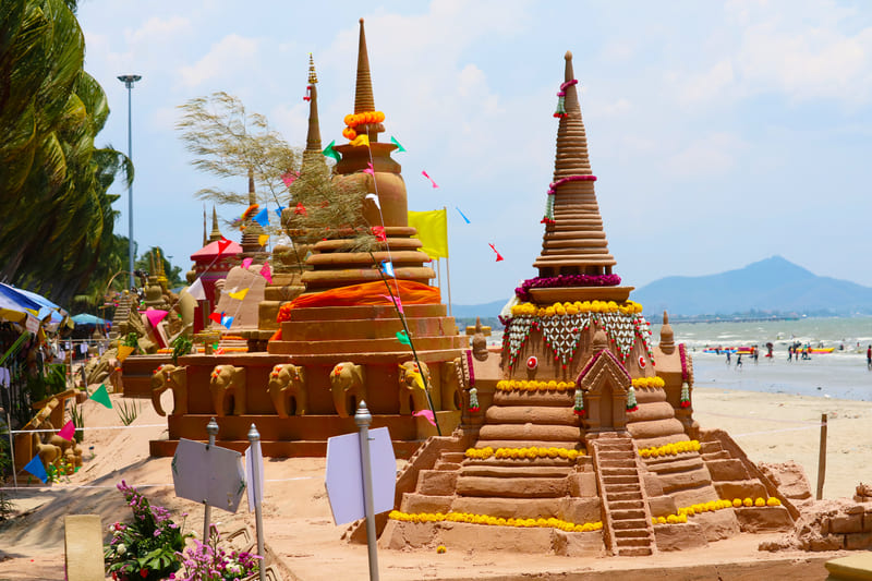การขนทรายเข้าวัดและก่อเจดีย์ทราย เป็นกุศโลบายของคนโบราณที่ต้องการคืนทรายให้กับวัด เนื่องจากเวลาเดินเข้าวัดอาจมีเศษทรายติดรองเท้าออกไป เราจึงต้องกลับมาก่อเจดีย์ทรายเพื่อบูรณปฏิสังขรณ์วัด เป็นการทำบุญถวายเป็นพุทธบูชา เพื่อสะสมอานิสงส์ให้มีอายุยืนยาว มีทรัพย์สมบัติใช้ตลอดทั้งปี เป็นอีกหนึ่งกิจกรรมทำบุญวันสงกรานต์ ที่ขาดไม่ได้สำหรับคนไทย