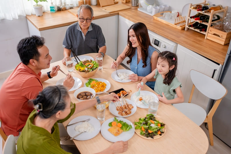 วันหยุดยาวช่วงสงกรานต์เป็นช่วงเวลาที่สมาชิกในครอบครัวซึ่งอาจแยกย้ายไปทำงานหรือเรียนต่างที่ ได้กลับมารวมตัวกัน การจัดเลี้ยงอาหาร จัดปาร์ตี้เล็ก ๆ หรือรับประทานอาหารร่วมกัน จึงเป็นช่วงเวลาที่มีค่าในการสร้างความทรงจำที่ดีร่วมกันในครอบครัว