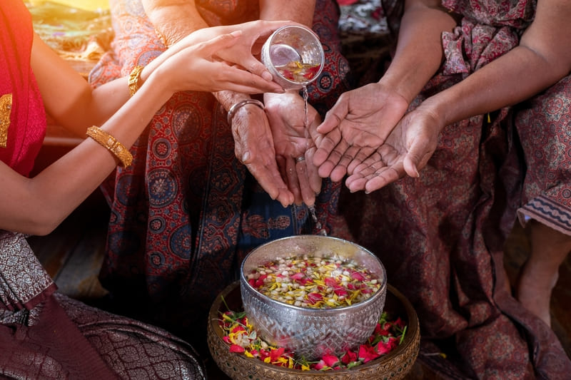 การรดน้ำดำหัวเป็นการแสดงความเคารพและขอขมาต่อบิดามารดา ญาติผู้ใหญ่ หรือผู้มีพระคุณ โดยลูกหลานจะนำน้ำลอยดอกมะลิมารดลงบนมือของผู้ใหญ่ เพื่อรับพรเป็นสิริมงคลแก่ชีวิต นับเป็นประเพณีที่ช่วยสานสายใยความรักความผูกพันในครอบครัวให้ลึกซึ้งยิ่งขึ้น