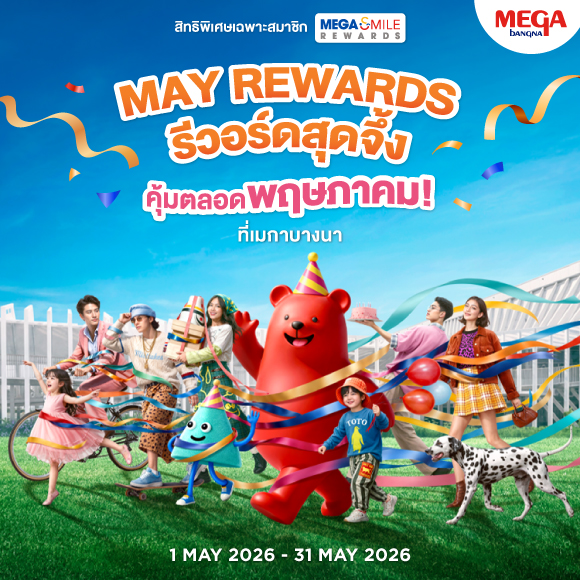 สิทธิพิเศษเฉพาะสมาชิก MEGA SMILE REWARDS ตั้งแต่วันที่ 1 พ.ค. 69 – 31 พ.ค. 69