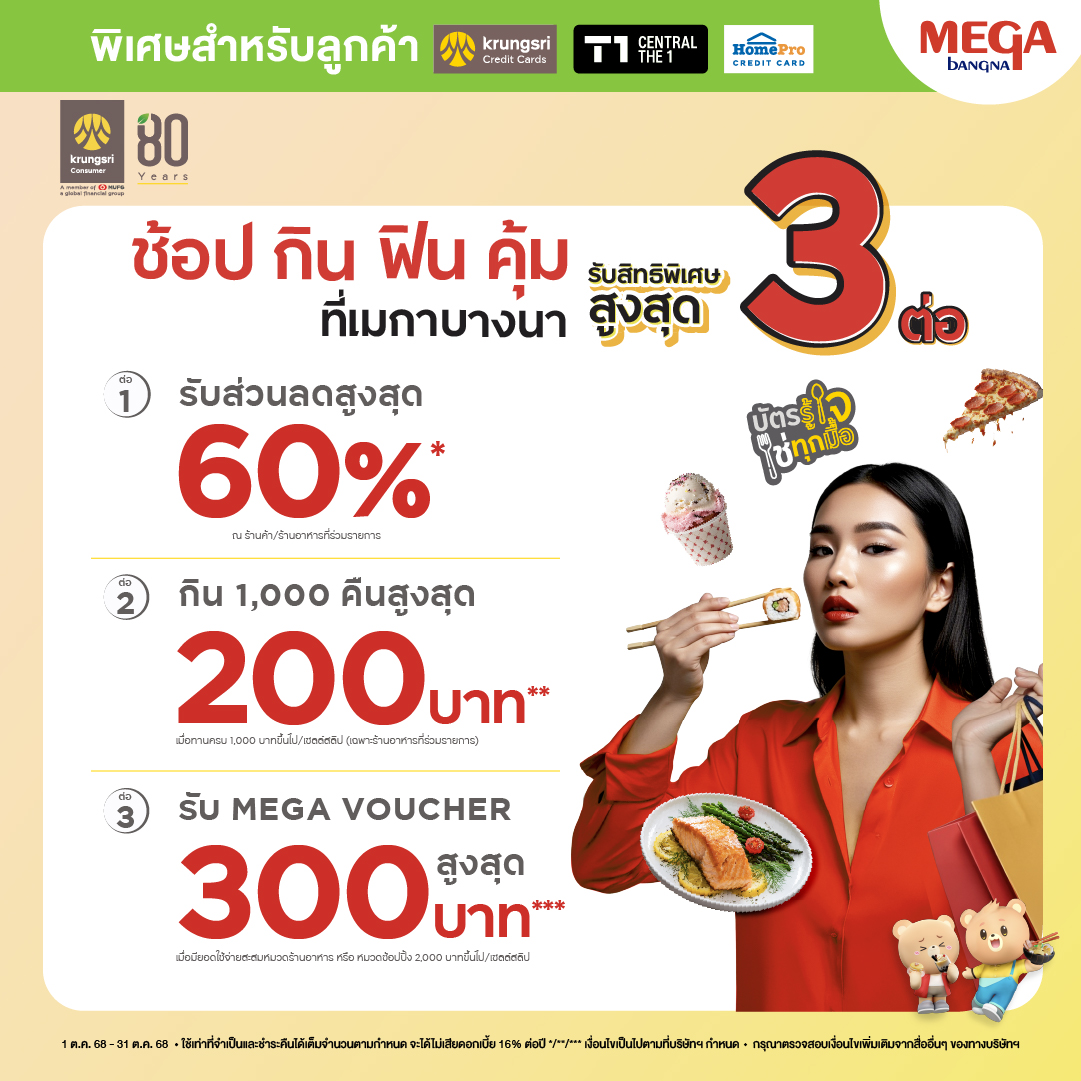 ช้อป กิน ฟิน คุ้ม ที่เมกาบางนา ตั้งแต่วันที่ 1 ส.ค. 68 – 31 ต.ค. 68